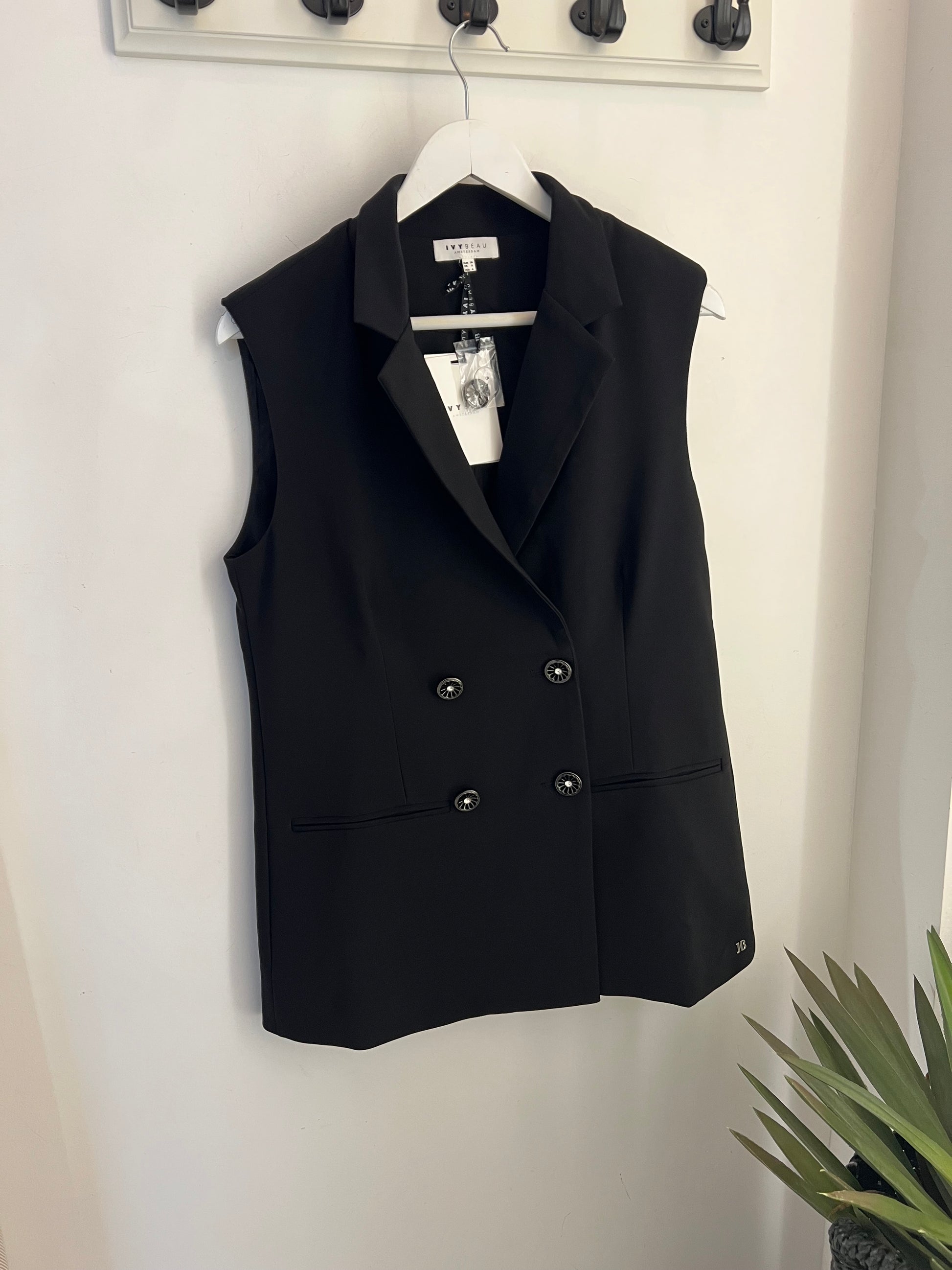 Die Anzugweste Sien von IVY BEAU hat eine elegante doppelte Knopfreihe mit funkelnden Strasssteinen und setzt so stilvolle Akzente. Dieses modische, schicke Design verleiht jedem Outfit eine raffinierte Note und sorgt für einen selbstbewussten Auftritt bei jedem Anlass. Ideal für alle, die Eleganz und modernen Stil mühelos miteinander verbinden möchten. Dazu passend haben wir die Anzughose "Scarlett".