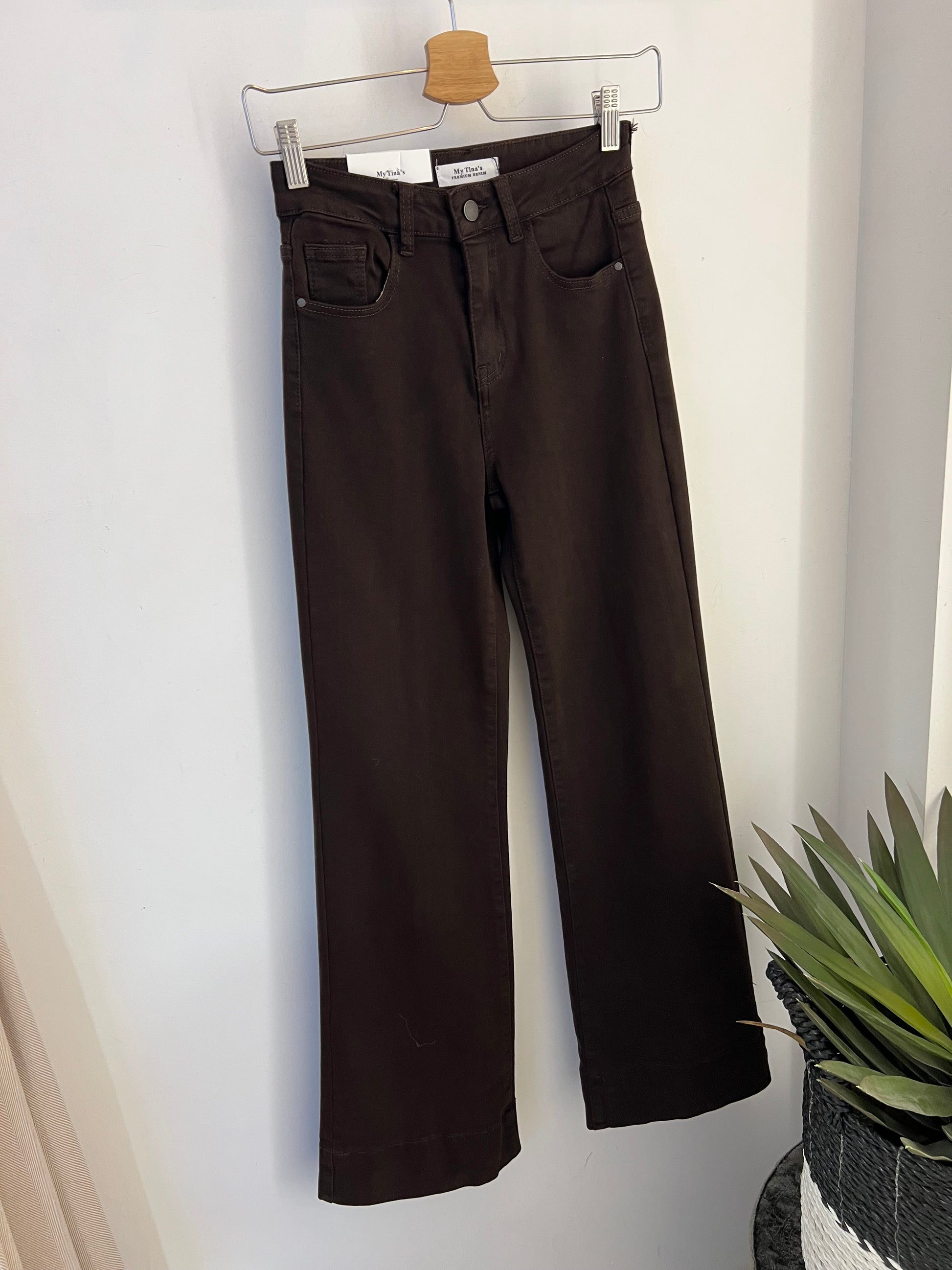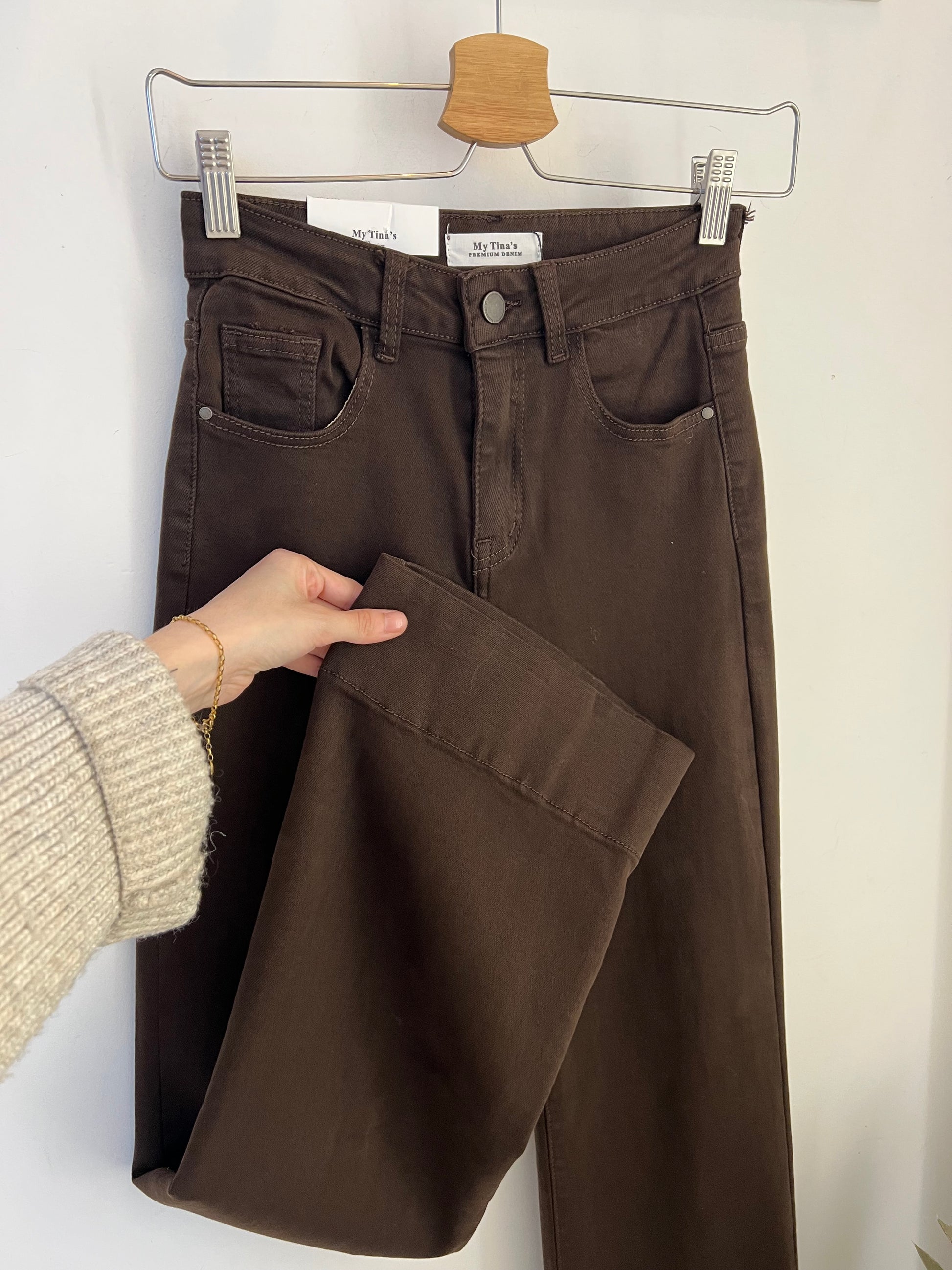 Die Jeanshose Selona in braun vereint Komfort und Stil mühelos. Ihr hoher Bund formt eine schmeichelhafte Silhouette, während der gerade Schnitt und der breite Saum für einen modernen Look sorgen. Dank des elastischen Materials passt sie sich perfekt deiner Figur an und bietet den ganzen Tag über angenehme Bewegungsfreiheit. Ein unverzichtbares Basic, das in keinem Kleiderschrank fehlen darf.