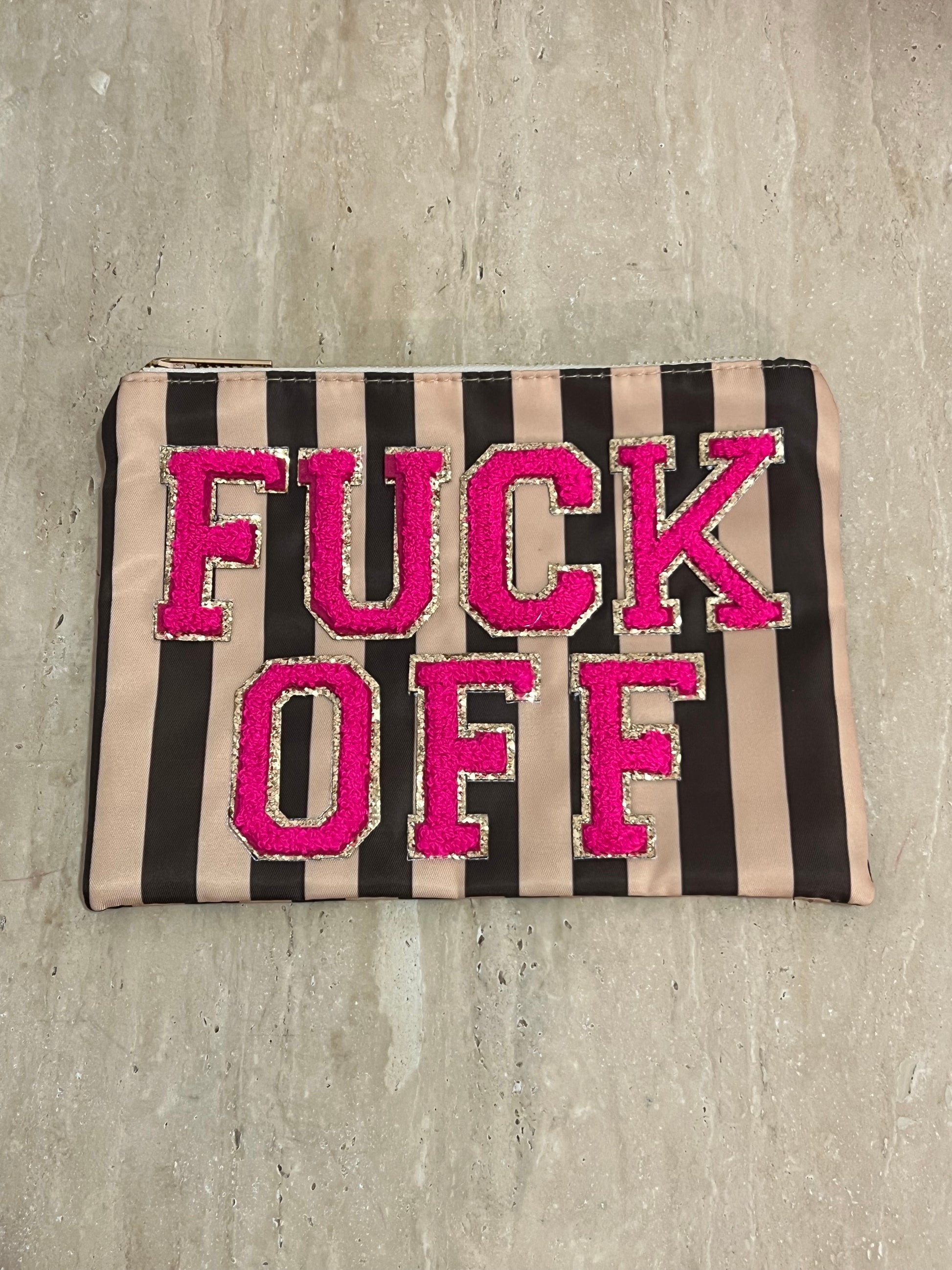 Setze ein Statement mit der Kosmetiktasche „FUCK OFF“. Mit ihrem frechen Schriftzug bringt sie Charme und Selbstbewusstsein in deinen Alltag. Perfekt für unterwegs – sie schützt deine Beauty-Essentials stilvoll und sorgt dafür, dass deine Persönlichkeit unverkennbar bleibt. Robust, praktisch und ein echter Hingucker. Ideal für alle, die Klartext lieben.