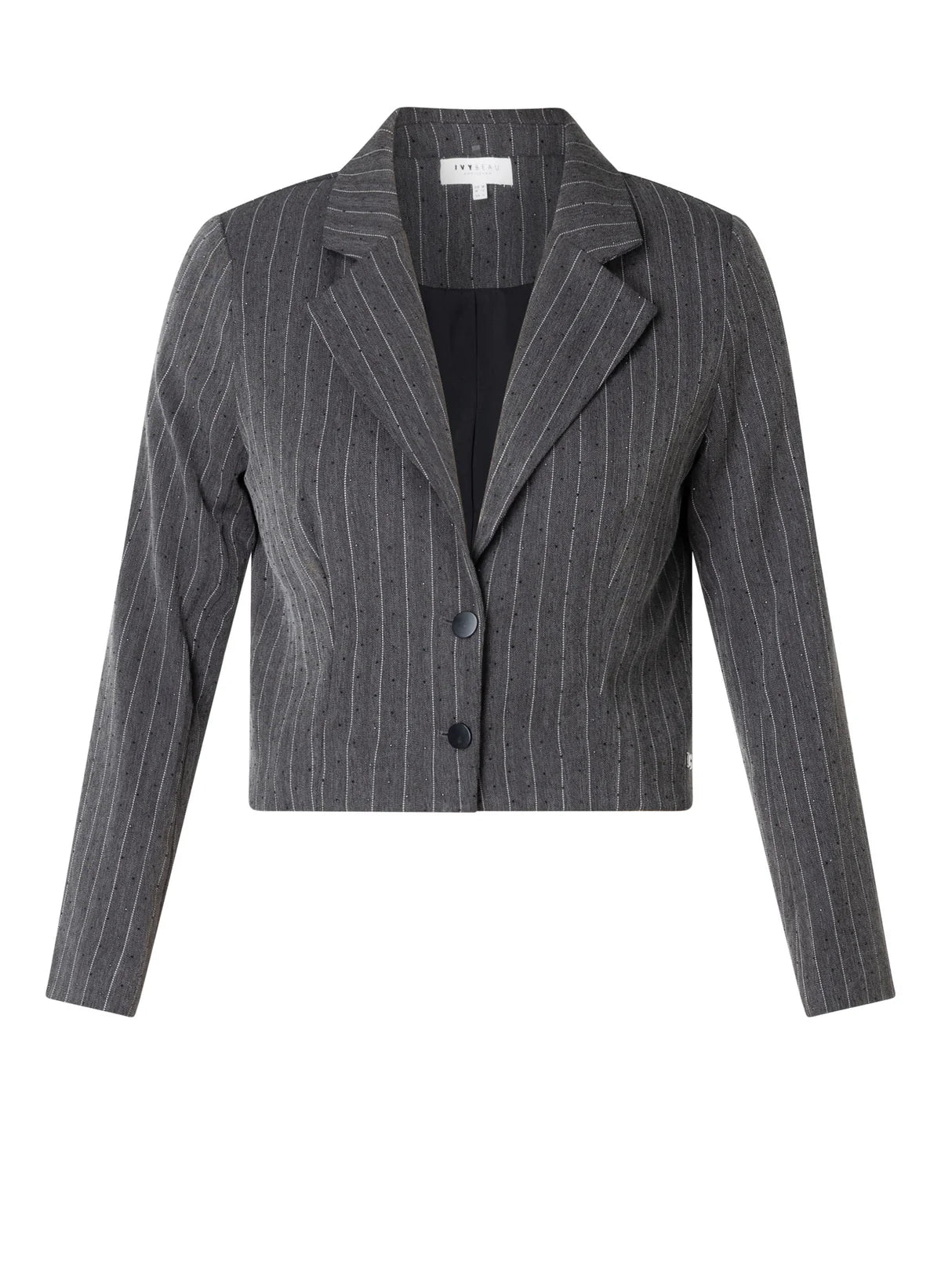 Der Kurzblazer Aleyna verkörpert zeitlose Eleganz mit modernem Twist. Das klassische Nadelstreifenmuster wird durch feinste Strasssteine veredelt, die bei jeder Bewegung subtil im Licht aufblitzen. Die leichten Schulterpolster verleihen eine selbstbewusste Silhouette. Ob zu Jeans für einen lässigen Look oder zu eleganten Hosen – dieser Blazer meistert mühelos den Spagat zwischen Raffinesse und Alltagstauglichkeit. Ein Statement-Piece für alle, die Qualität und Stil schätzen.