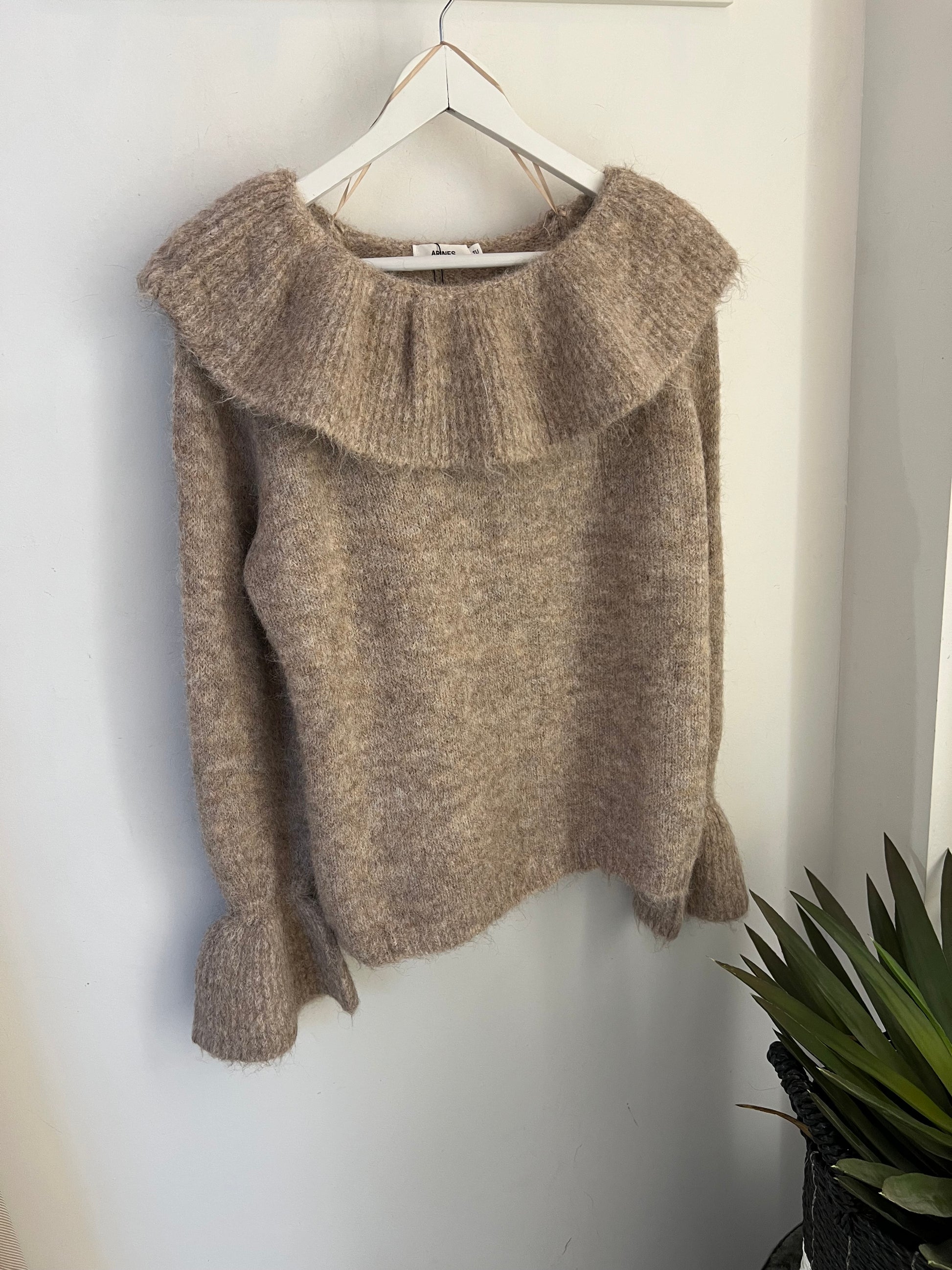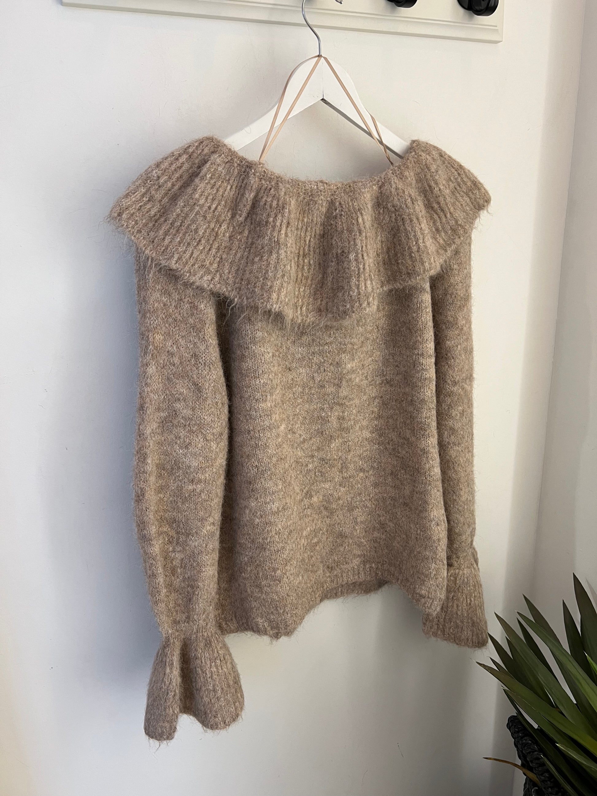 Der Pullover Merle vereint gemütlichen Komfort mit femininen Akzenten durch verspielte Volants an Kragen und Ärmeln. Sein langärmeliges Design hält warm, während das weiche Material zum Kuscheln einlädt. Ein stilvoller Begleiter, der sowohl elegant als auch bequem ist – perfekt für entspannte Tage und besondere Momente.