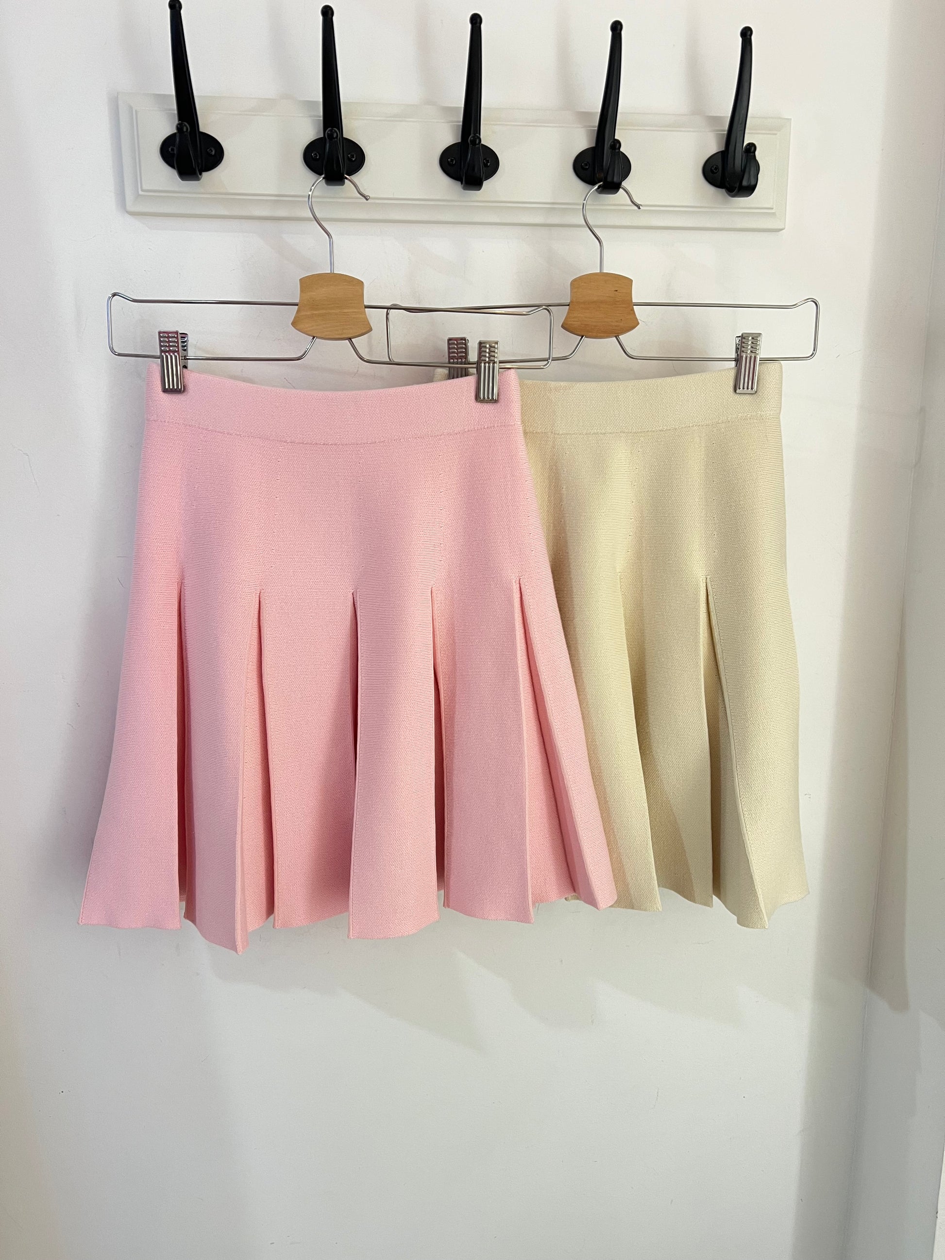 Süßer, kurzer Faltenrock aus dickem Stoff mit dehnbarem Bund.