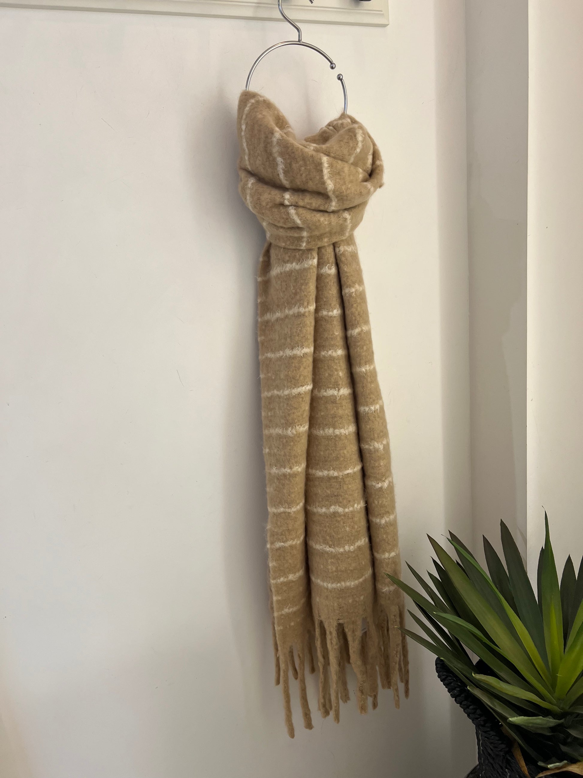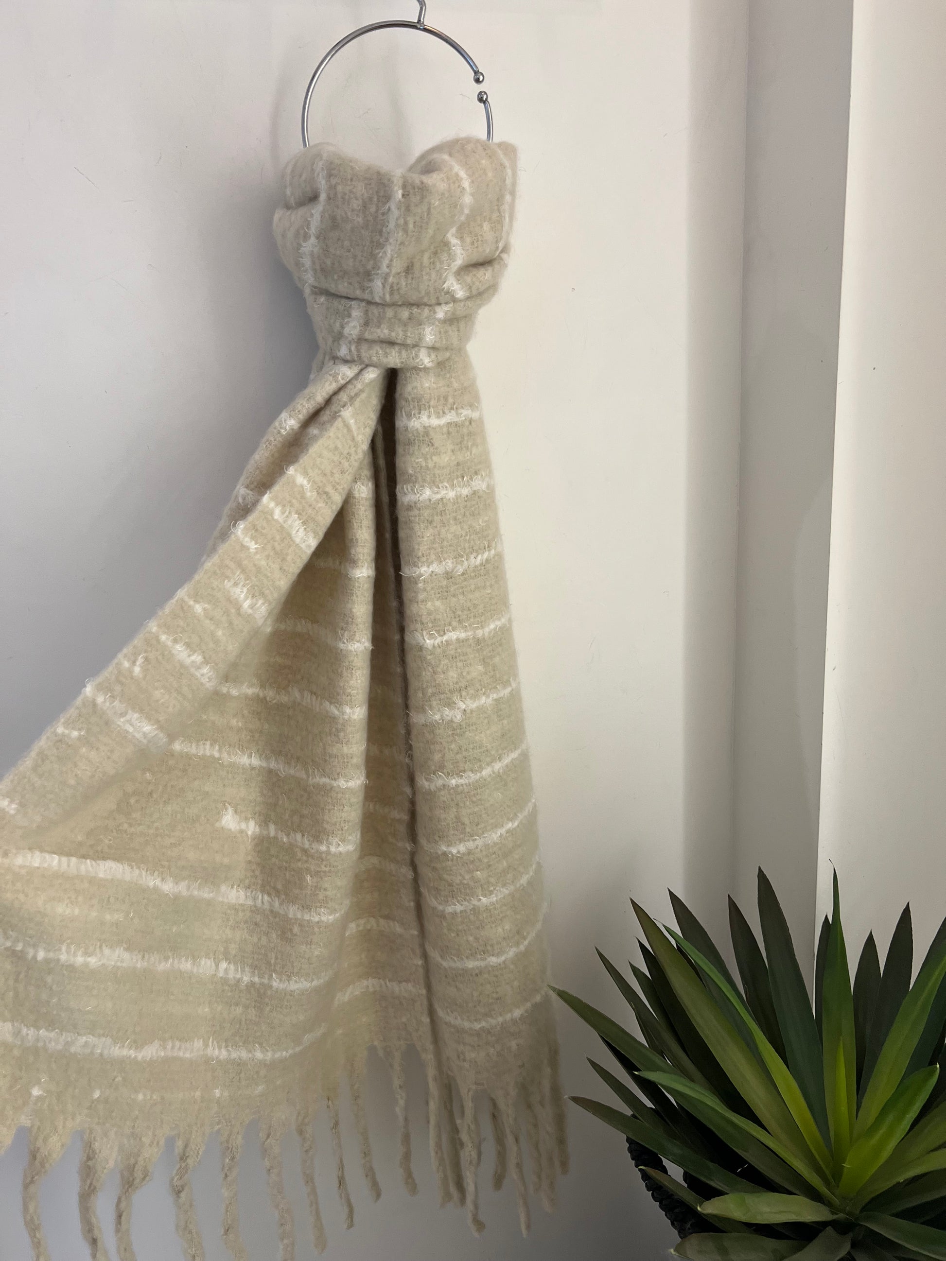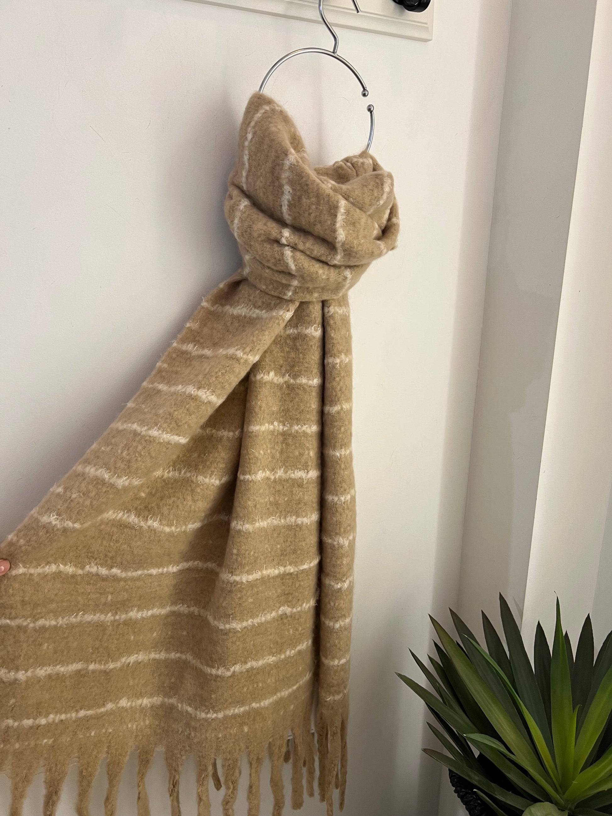 Entdecken Sie den Kuscheligen Schal „Steffi“ – Ihr perfekter Begleiter für kalte Tage. Das flauschige, gestreifte Design verspricht nicht nur wohlige Wärme, sondern auch einen stylischen Look. Aus 100 % Viskose, fühlt sich der Schal besonders weich auf der Haut an. Die verspielten Fransen setzen einen modischen Akzent.