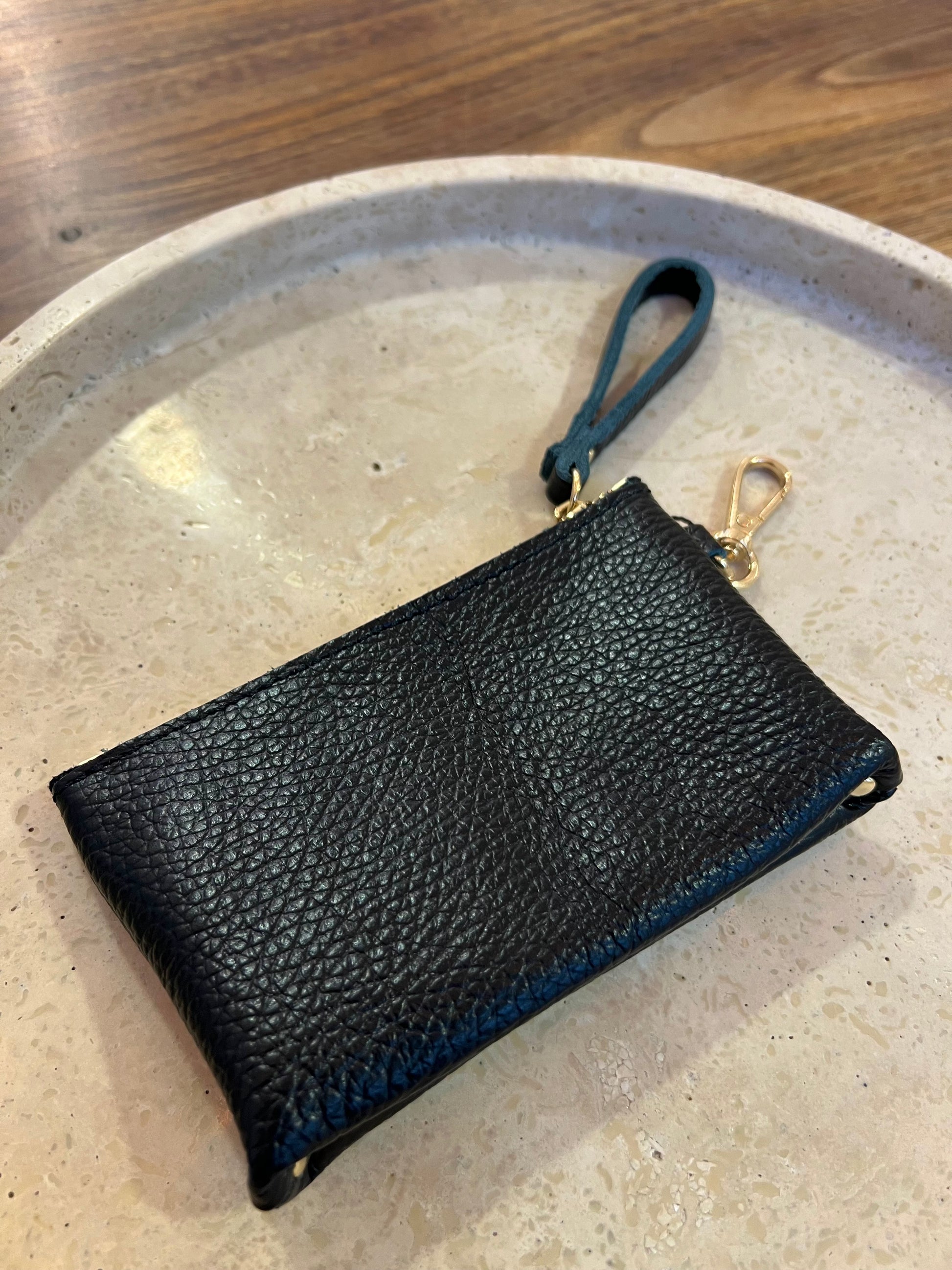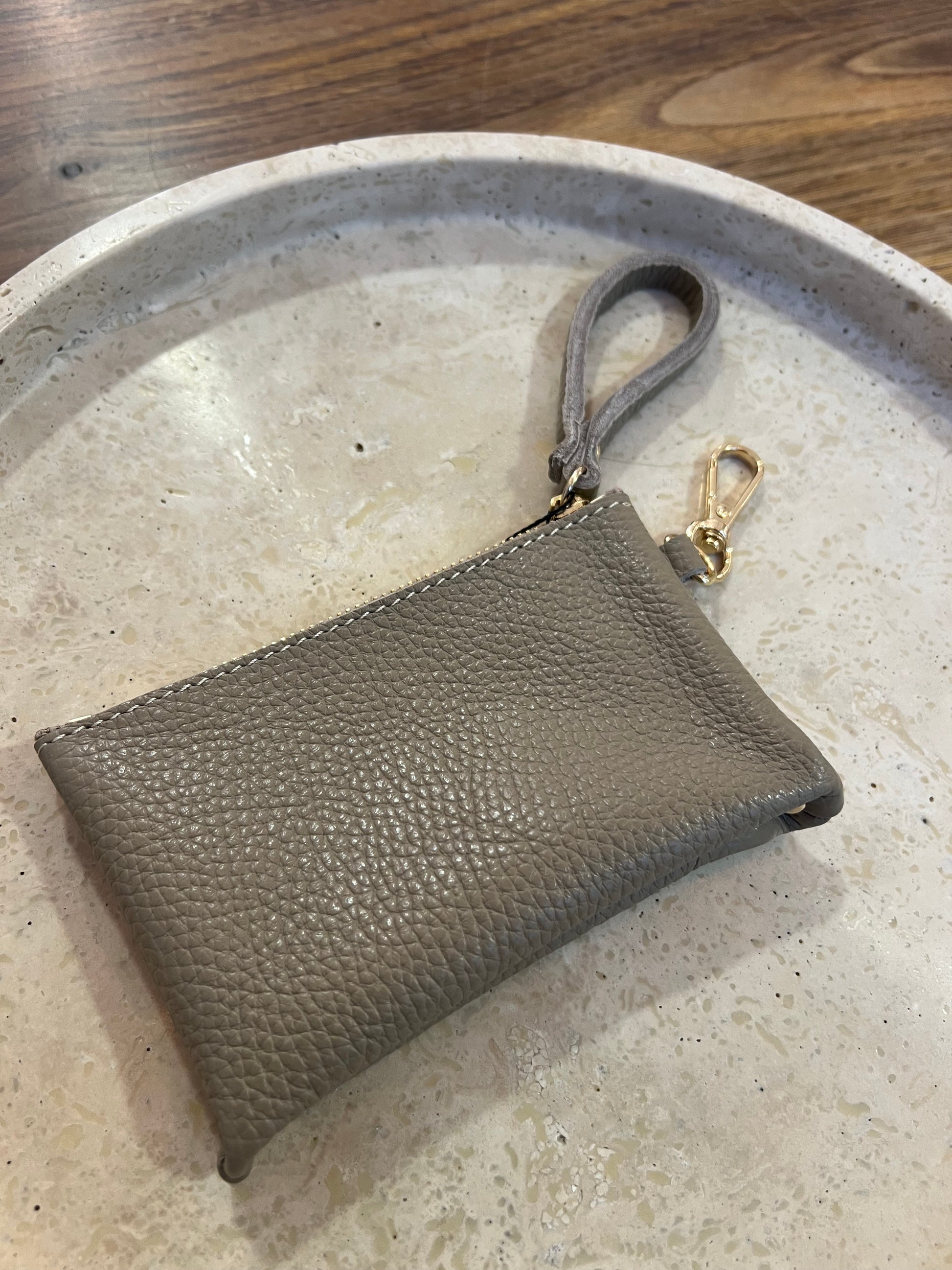 Das Schlüssel Portemonnaie Looma aus Leder ist ein praktischer Begleiter für den Alltag. Mit seiner Trageschlaufe lässt es sich schnell aus der Handtasche ziehen. Es ist in verschiedenen Farben sowie mit Metallic-Leoprint erhältlich. Die goldene Hardware verleiht dem kleinen Portemonnaie einen edlen Touch. Es bietet ausreichend Platz für Schlüssel, Kleingeld, Karten oder andere kleine Gegenstände wie Tampons und sorgt so für optimale Ordnung und schnellen Zugriff. Ideal für alle, die Funktionalität und Stil verbinden möchten.