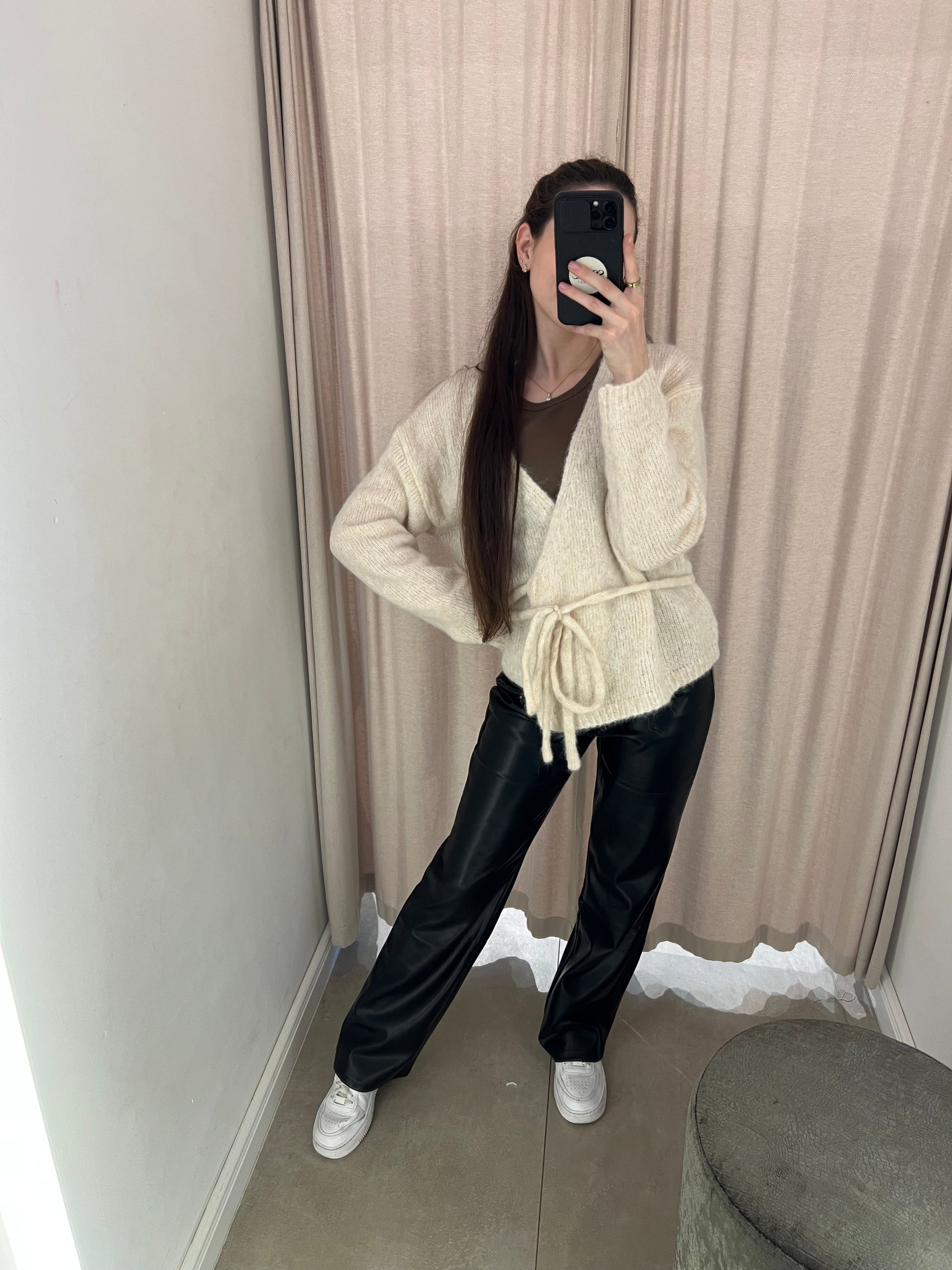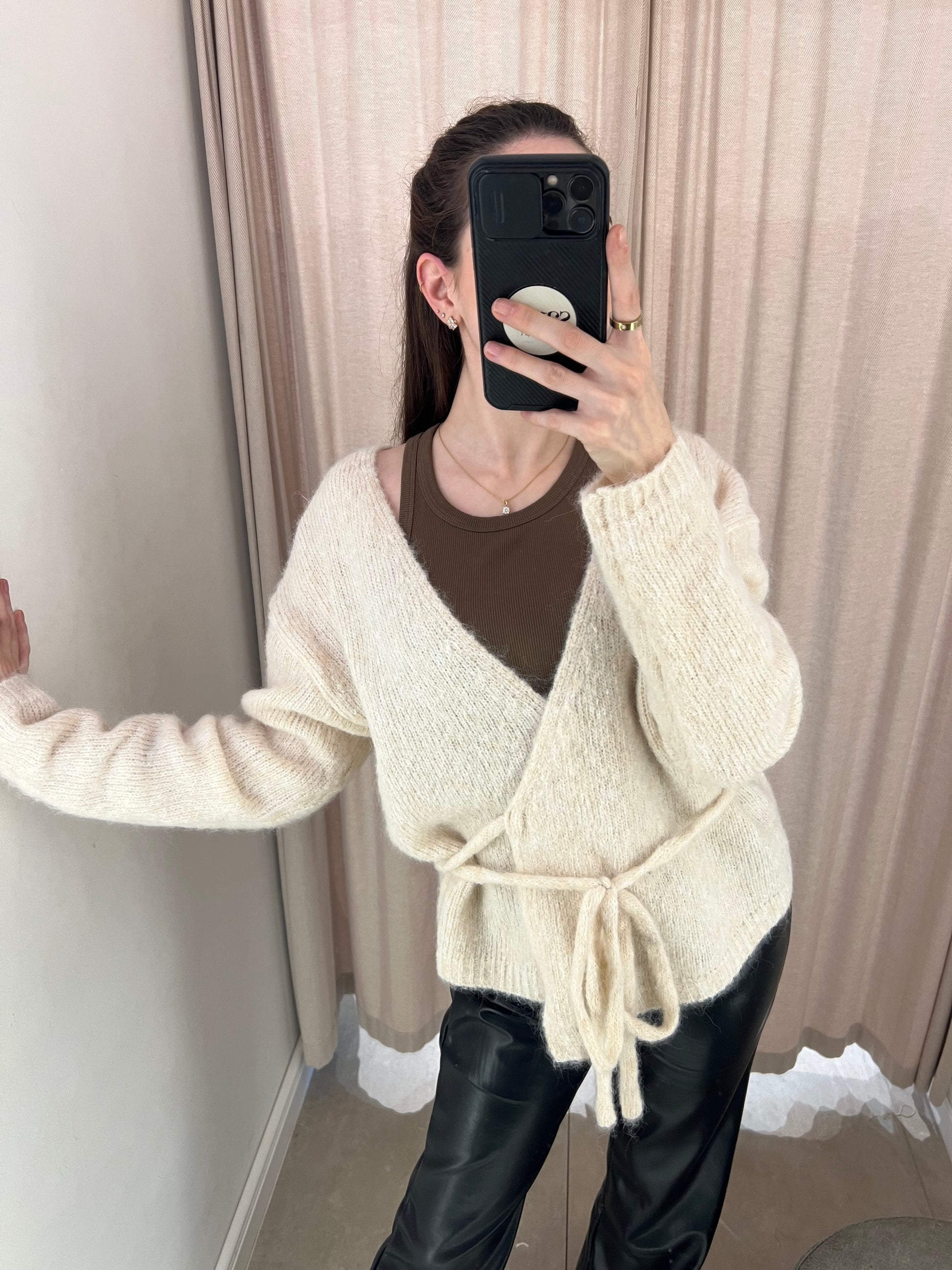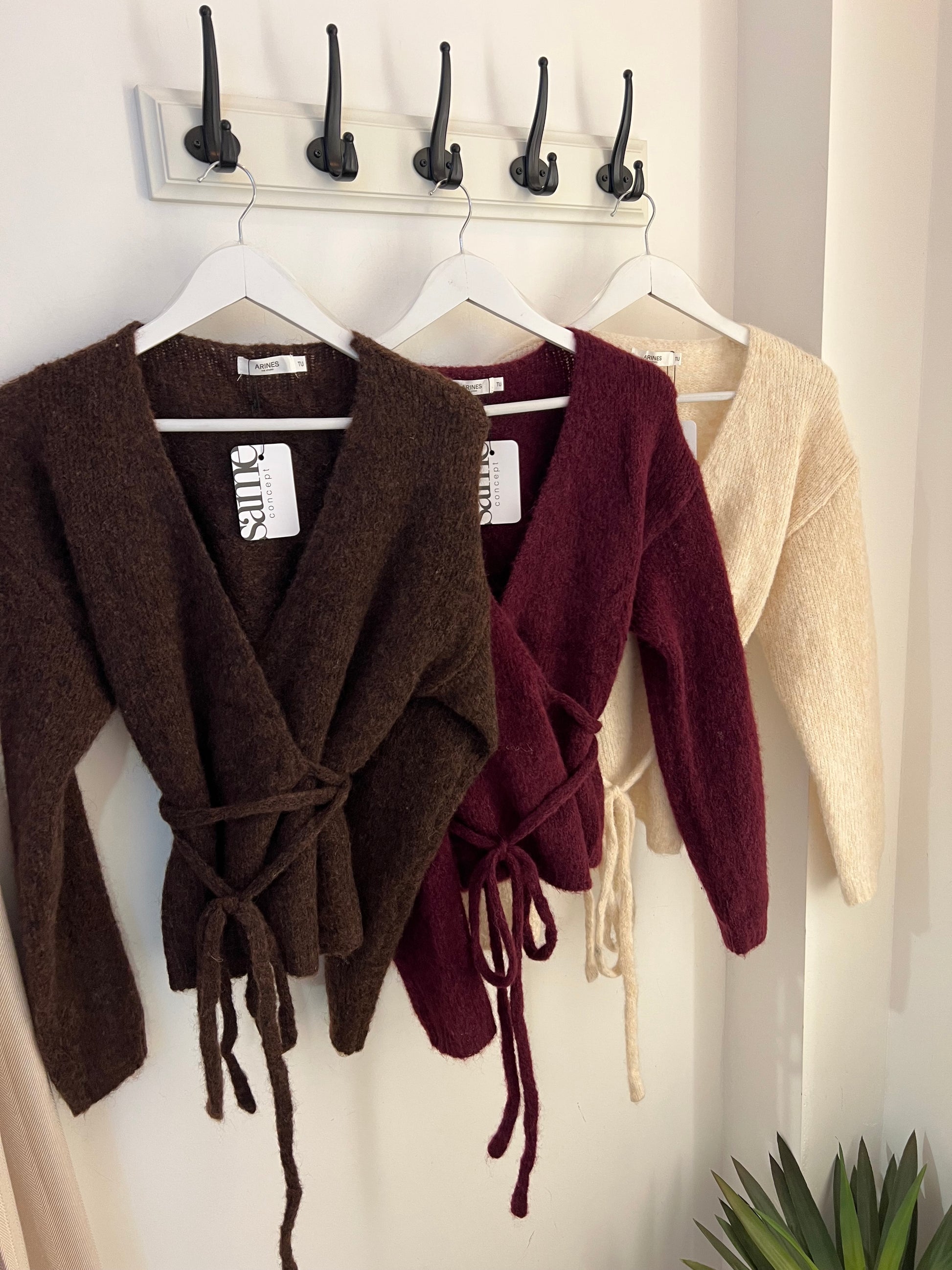 Der Schnürcardigan mit V-Ausschnitt verbindet zeitlose Eleganz mit individueller Passform. Dank des praktischen Schnürdetails lässt sich der Cardigan perfekt an Ihre Figur anpassen, während der offene V-Ausschnitt einen femininen Look zaubert. Ideal für entspannte Tage oder elegante Anlässe, ergänzt er vielseitig Ihre Garderobe und sorgt für Komfort und Stil zugleich.