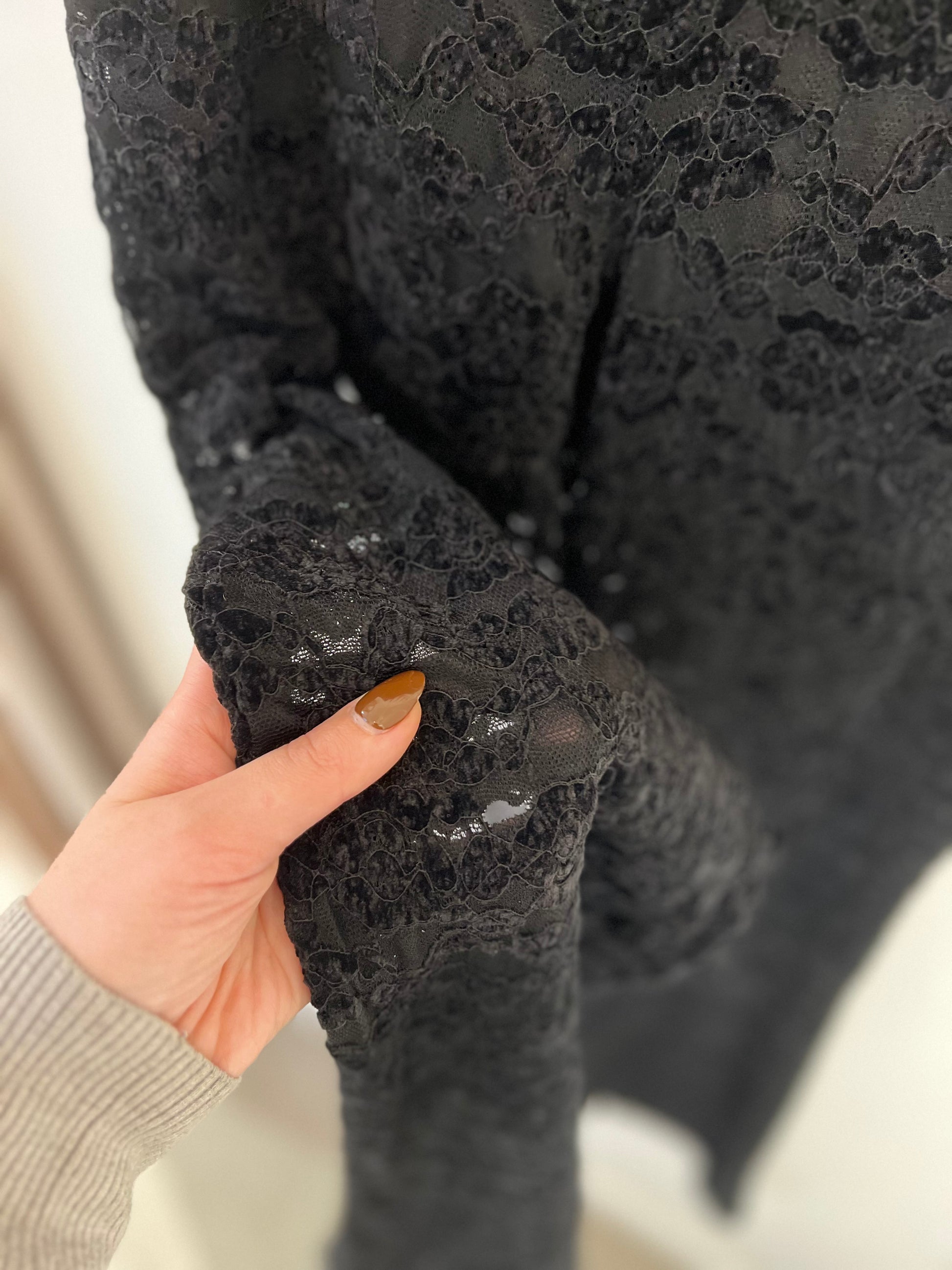 Die Spitzenhose Samantha verbindet Luxus mit Raffinesse. Gefertigt aus samtigen Stoff mit eleganten Spitzendetails, besticht sie durch ihren fließenden, leichten Schnitt – ideal für festliche Momente und besondere Anlässe.