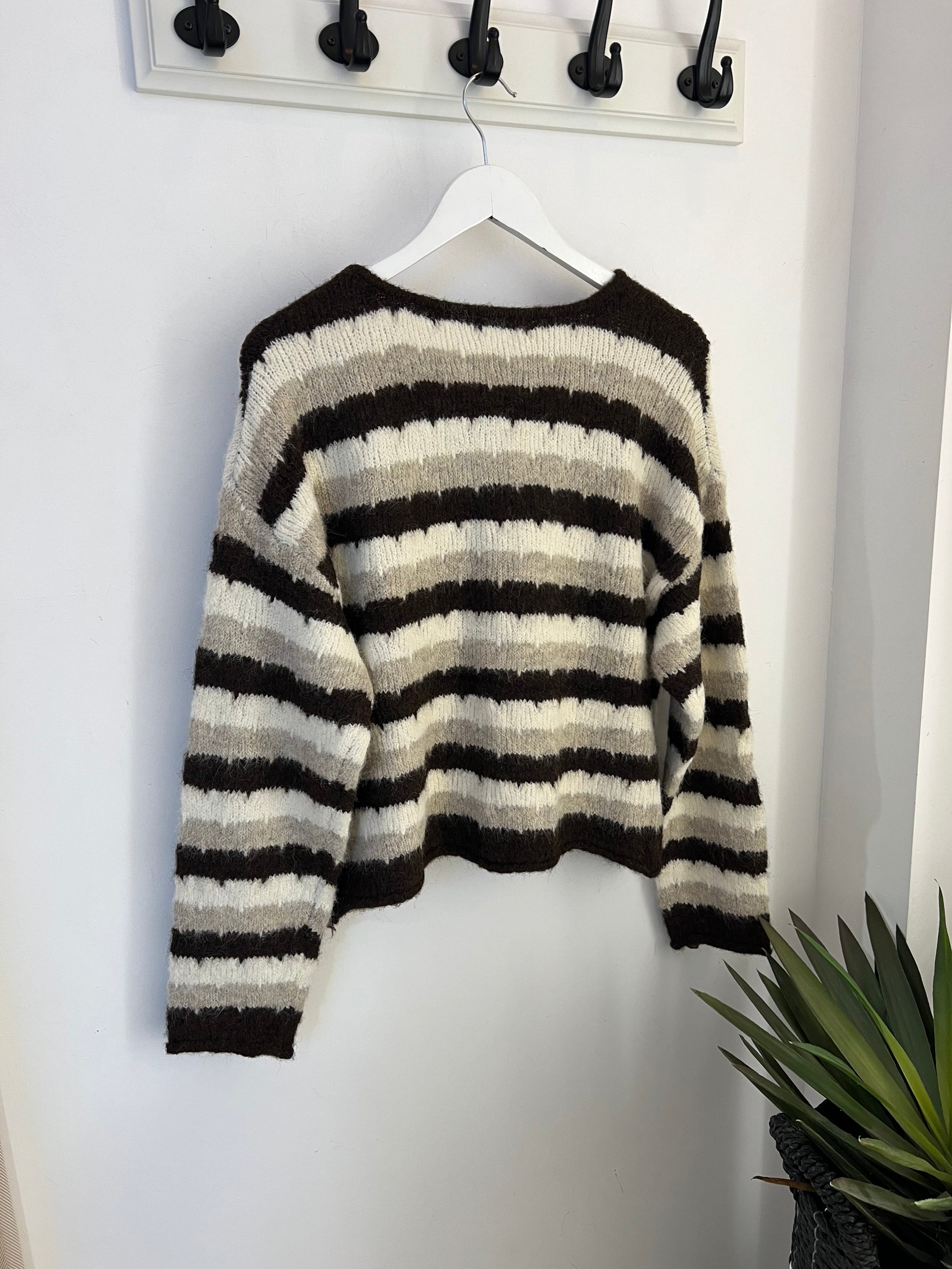 Die Strickjacke Sonja vereint zeitlose Eleganz mit einem Hauch von Extravaganz. Auffällige Streifen verleihen ihr einen modernen Look, während goldene Zierknöpfe in Sonnenform charmante Akzente setzen. Diese vielseitige Jacke bringt Stil und Komfort in Ihre Garderobe und lässt sich mühelos zu verschiedenen Outfits kombinieren – perfekt für jeden Anlass.