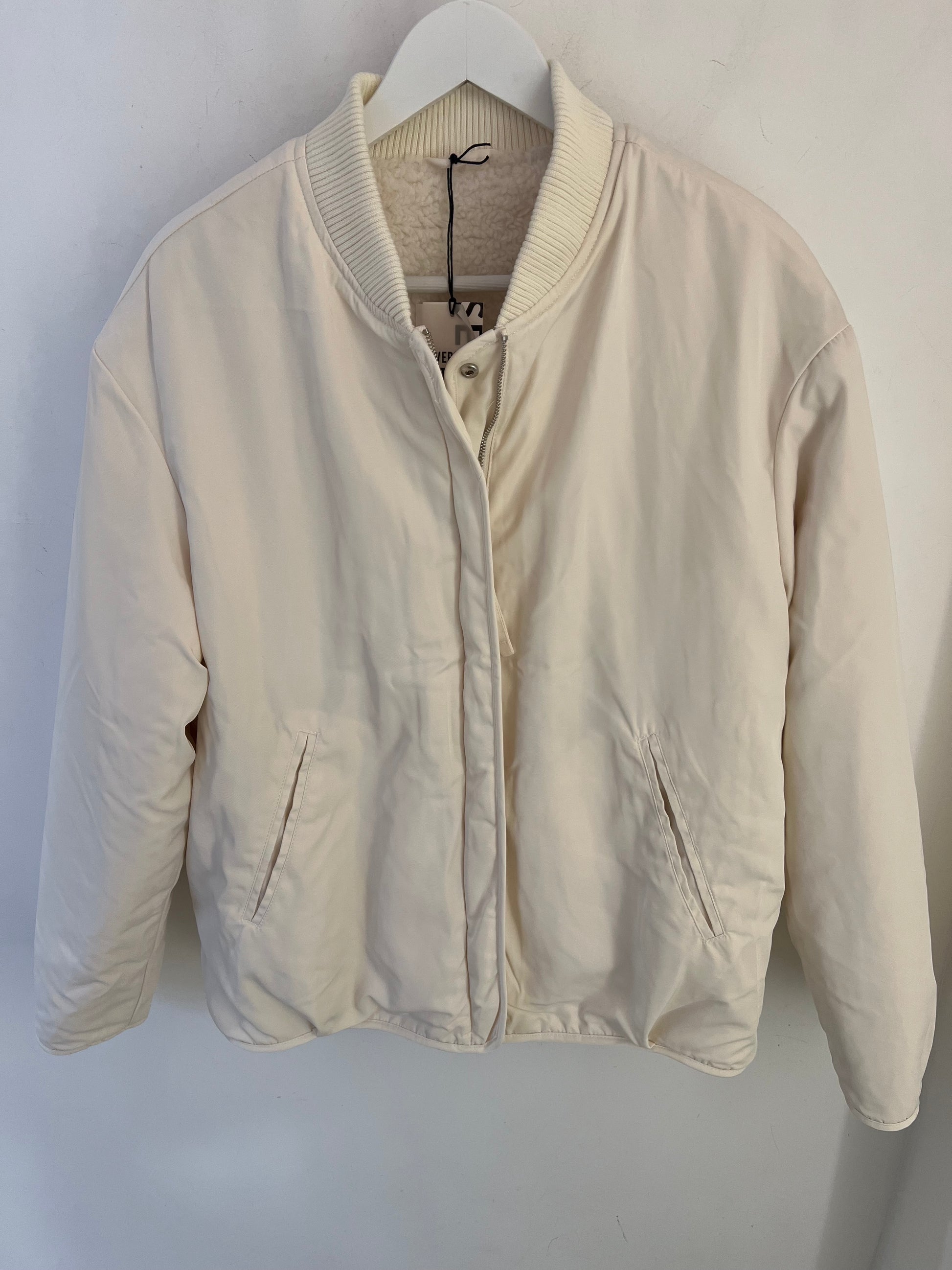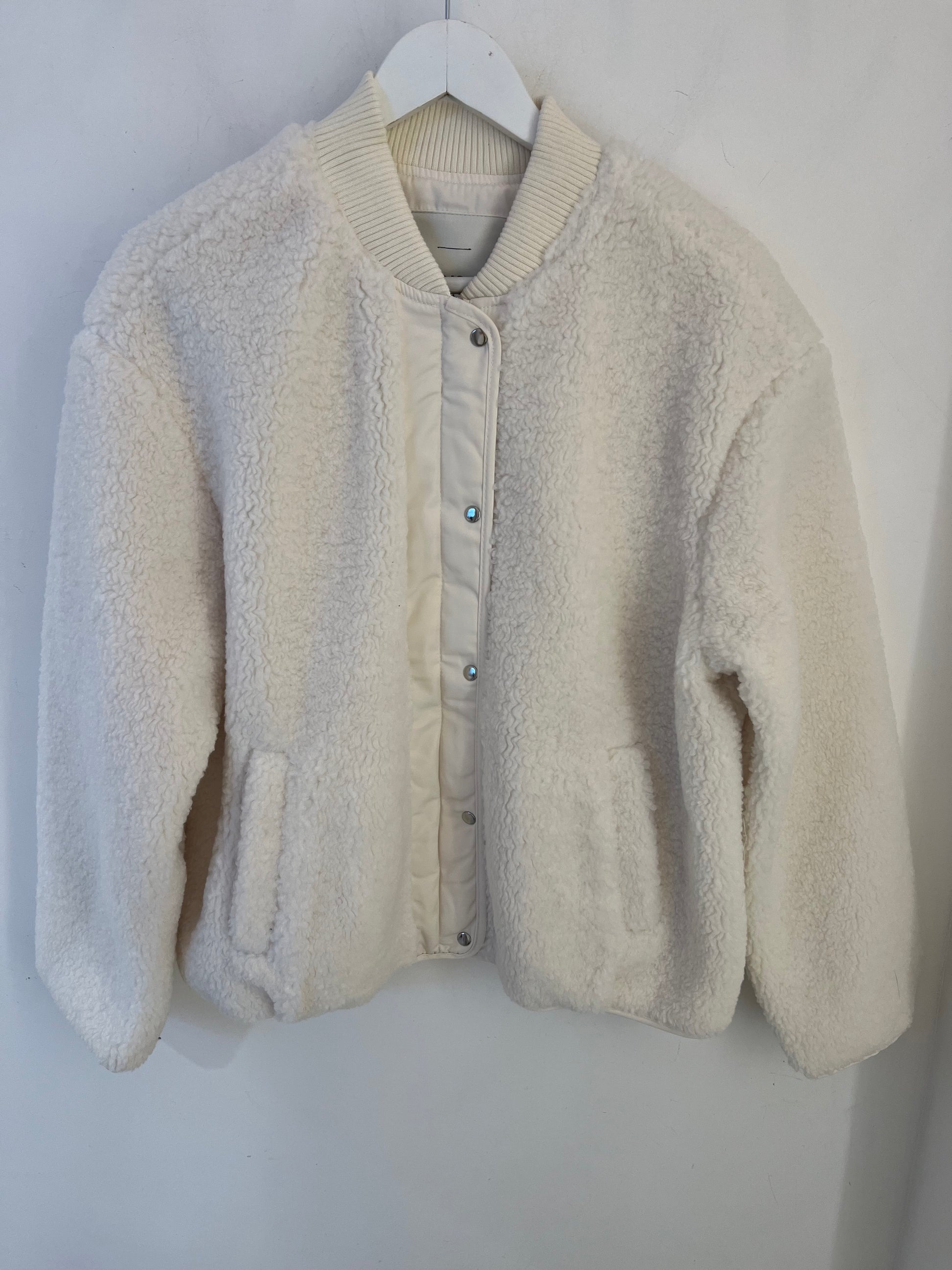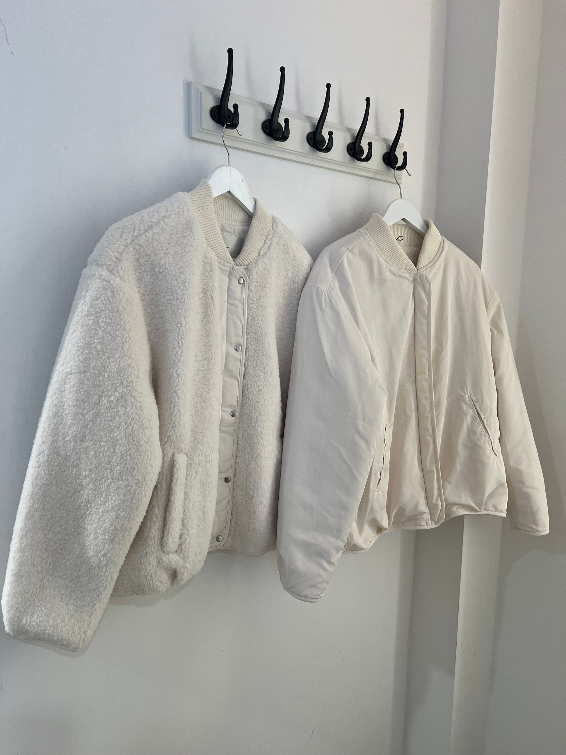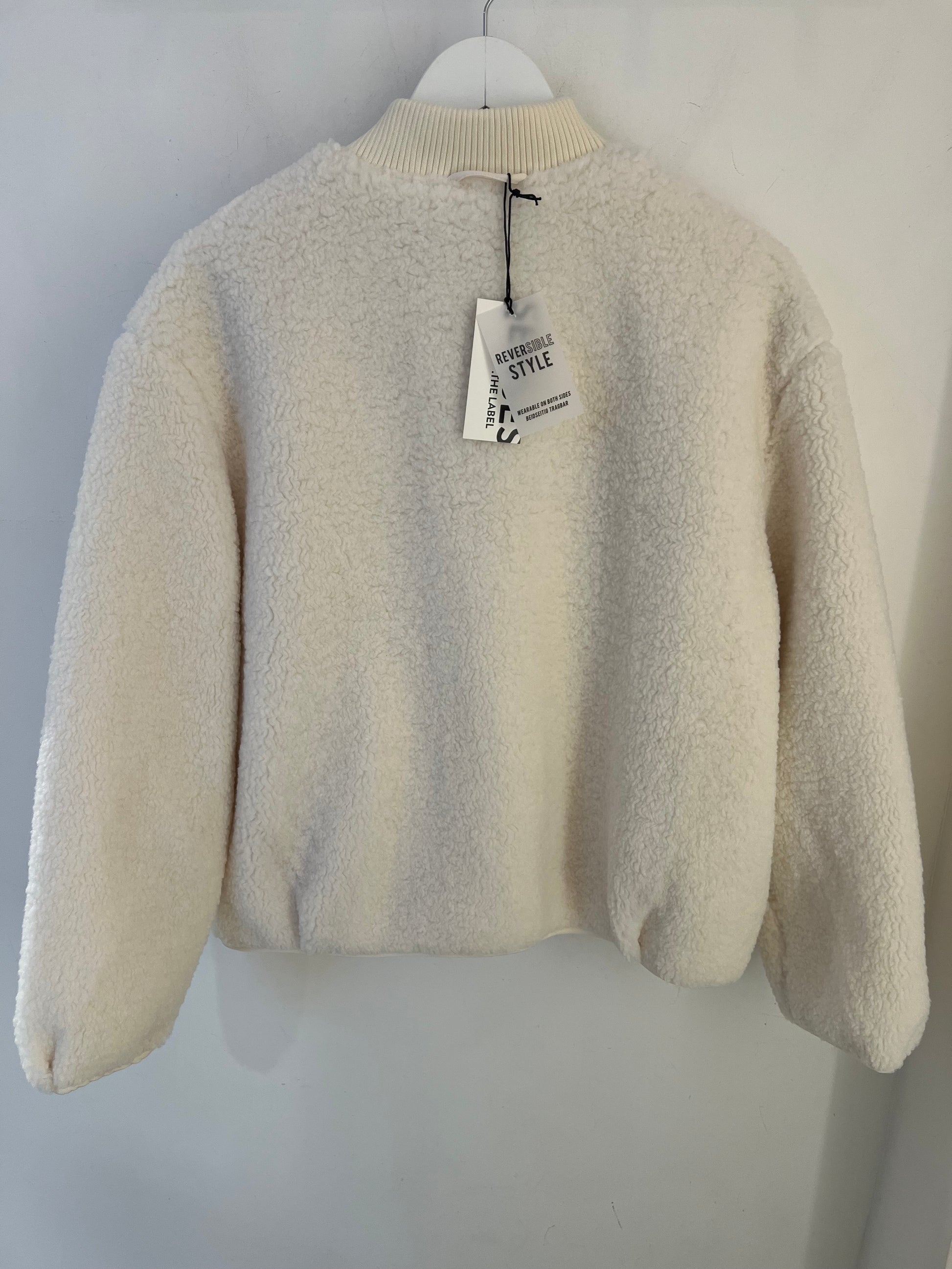 Die Wendejacke "Okra" von SENSES The Label bietet zwei Looks in einem: Tragen Sie sie elegant glatt oder kuschelig weich im Teddyfell-Look. Die Knöpfe und der reversible Reissverschluss sind silberfarben. Der lässige Collegejacken-Schnitt sorgt für einen entspannten Style, der zu jedem Outfit passt.