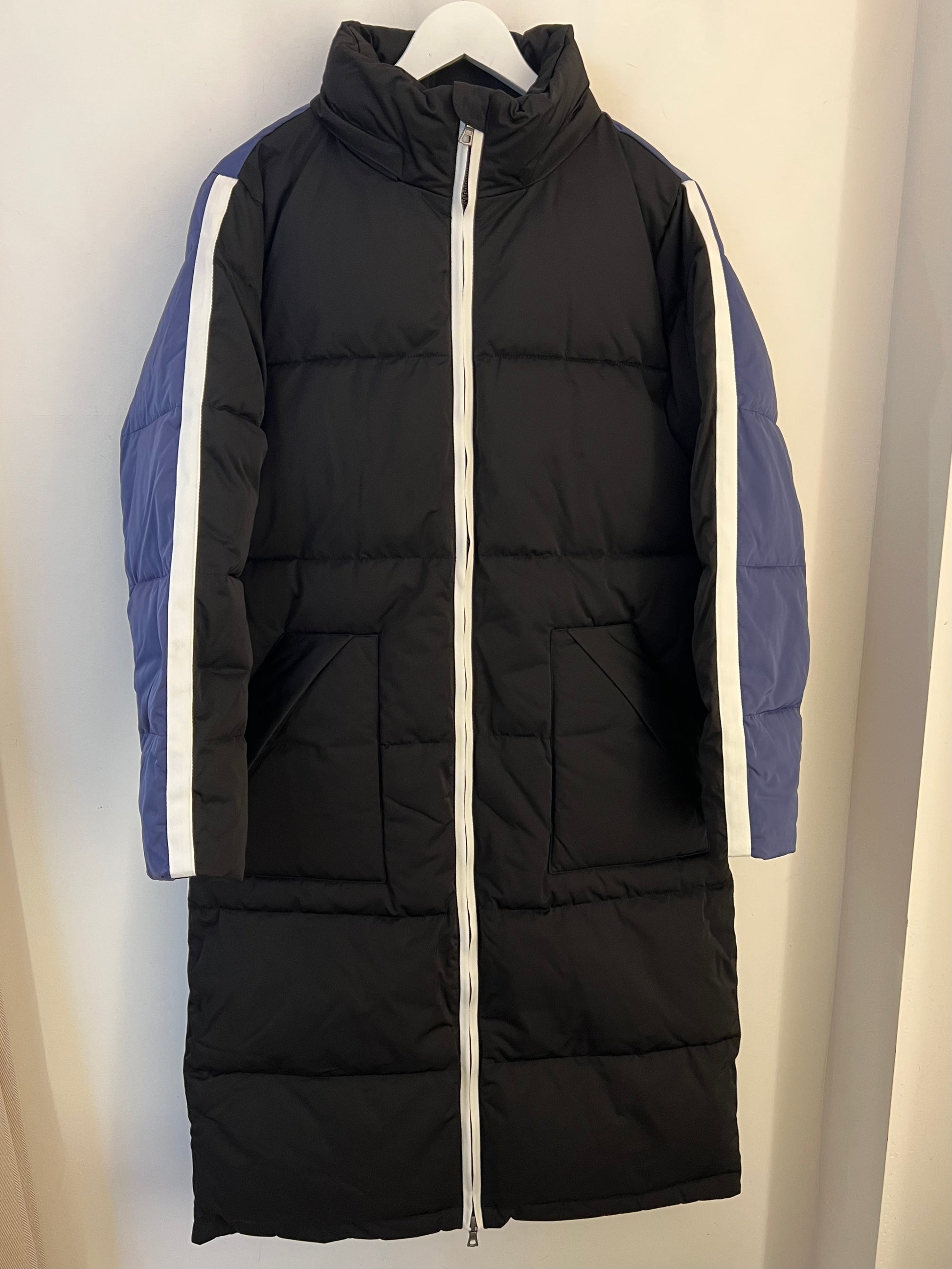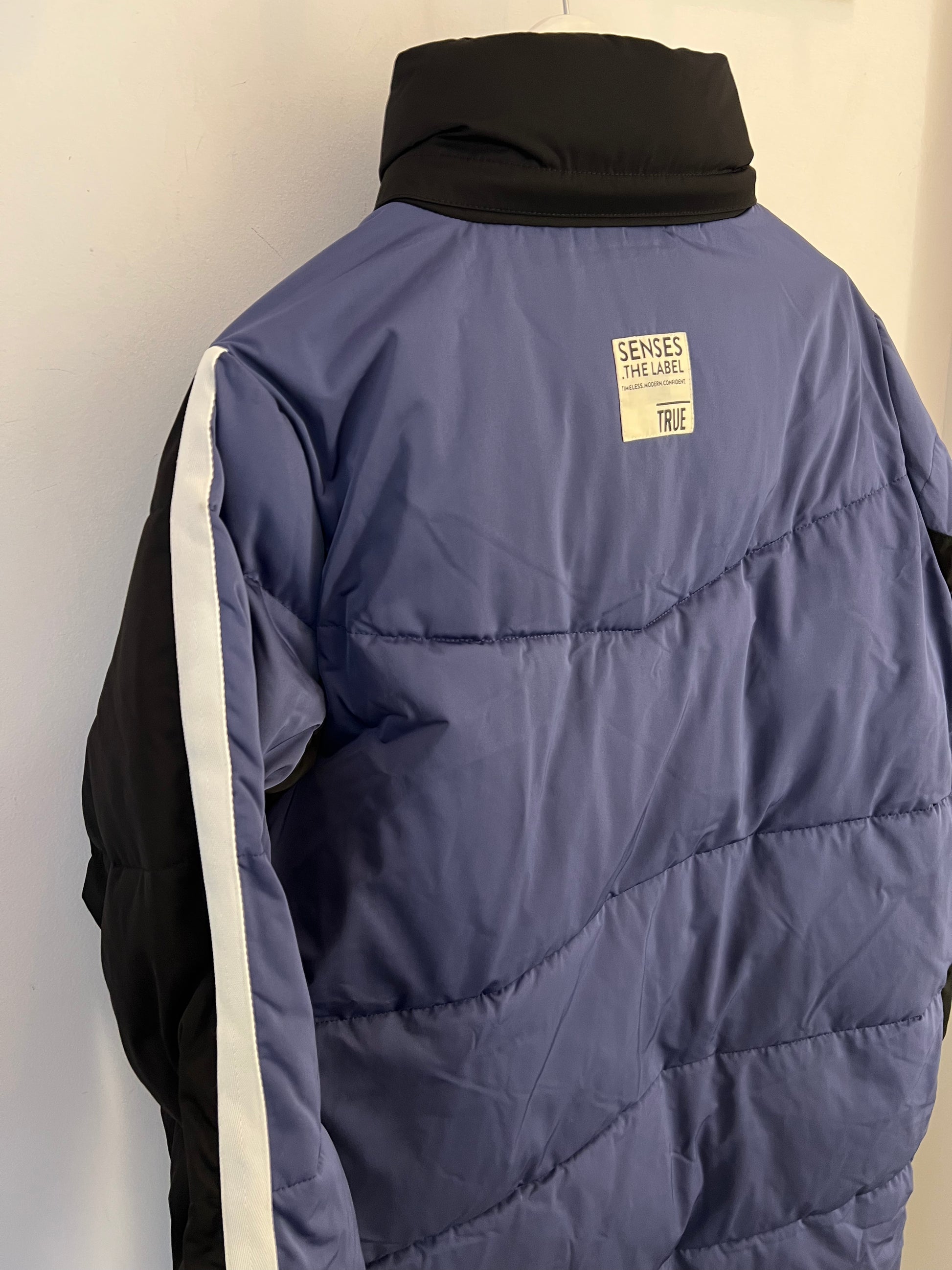 Dieser lange Wintermantel Oklahoma von SENSES The Label verbindet sportlichen Stil mit durchdachter Funktionalität. Die Pufferjacke besticht durch eine auffällige Farbkombination: schwarz vorne, dunkelblau hinten und ein weißer Streifen an der Seite für einen dynamischen Look. Praktische seitliche Eingrifftaschen bieten schnellen Zugang, während eine Innentasche wichtige Kleinigkeiten sicher verstaut. Im Nacken ist das Logo angebracht und eine Kaputze verbirt sich dort hinter einem Reißverschluss - für maximale Flexibilität. Ideal für kalte Tage, hält dieser Mantel warm und sorgt gleichzeitig für einen modernen Auftritt.