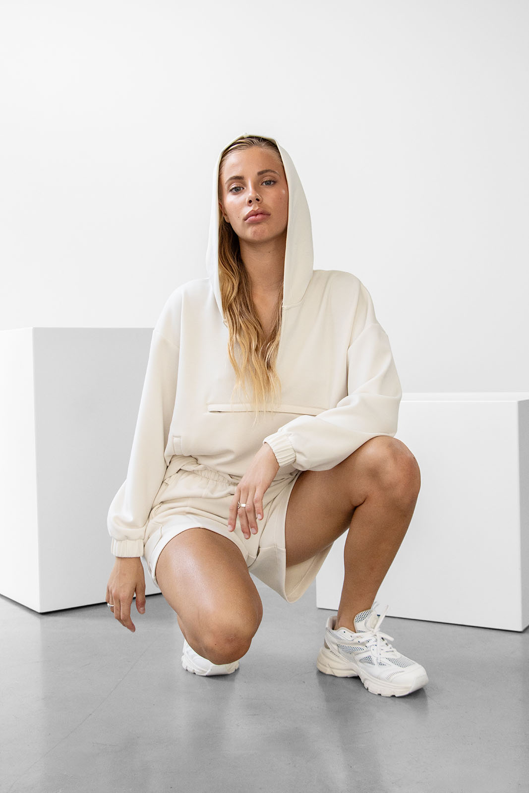 Bequem, leicht und mit extra Tasche am Bauch sowie an der Seite, damit du nie wieder deine Sachen verlierst! Mit Halfzip-Reißverschluss und Kordeln für eine perfekte Passform. Der Allba-Hoodie ist dein perfekter Begleiter für gemütliche Stunden zuhause oder unterwegs. Dazu passend haben wir die Jogger Pant Alba, die deinen Loungelook abrundet.